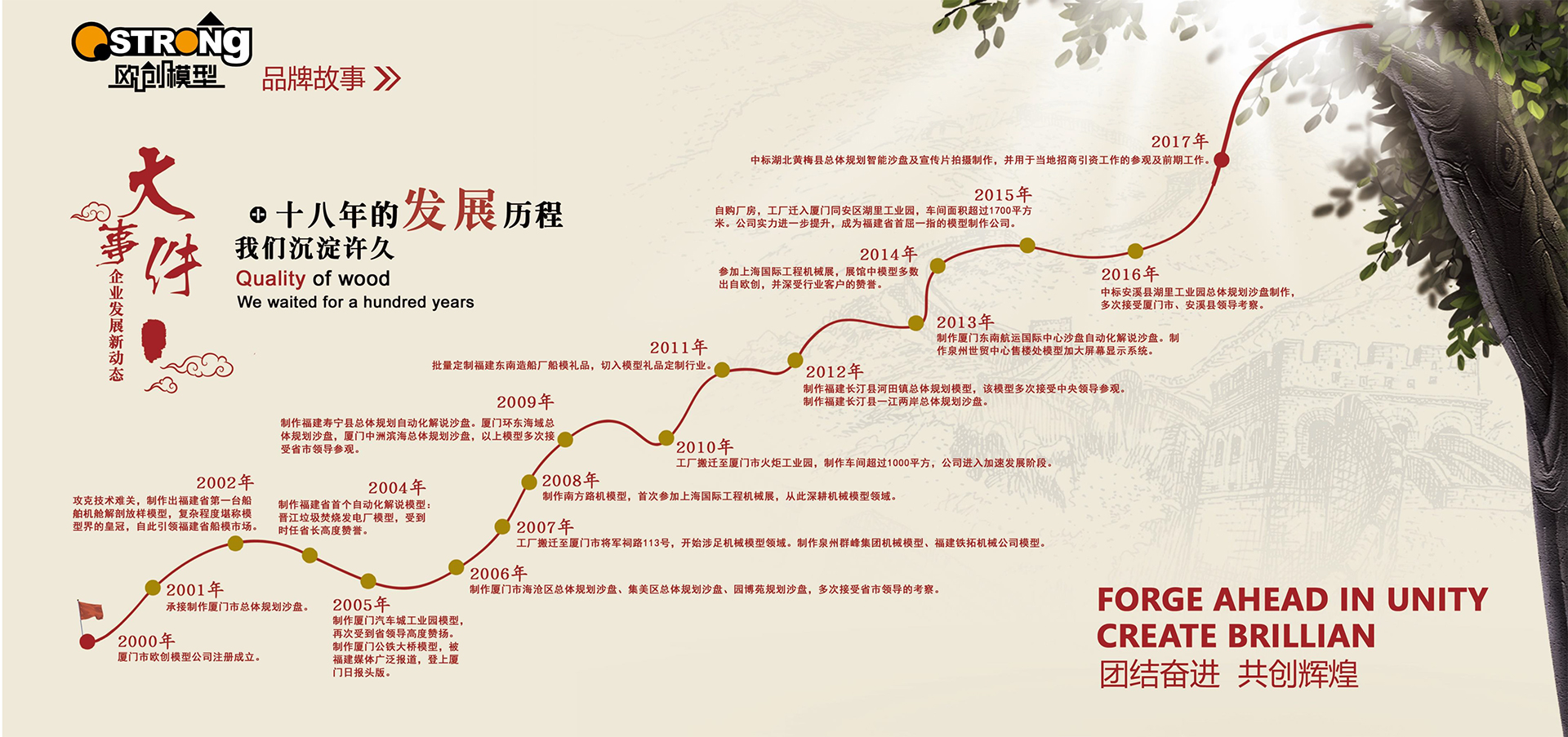 自創(chuàng)始之日起, 歐創(chuàng)模型致力于設(shè)計(jì)、制作最佳品質(zhì)的各類(lèi)模型,以工匠精神讓每件模型成為藝術(shù)品,已累計(jì)設(shè)計(jì)產(chǎn)出各類(lèi)模型超過(guò)10000余件,客戶(hù)遍及全國(guó)及港澳臺(tái)、東南亞地區(qū)。目前公司業(yè)務(wù)已涵蓋了城市規(guī)劃沙盤(pán)模型、房地產(chǎn)模型、大型機(jī)械模型、工業(yè)廠(chǎng)房模型、各類(lèi)船模、營(yíng)銷(xiāo)道具模型、以及禮品模型定制等,并形成了一整套含解說(shuō)、多媒體投影、智能互動(dòng)、光影互動(dòng)、沙盤(pán)模型、影視拍攝在內(nèi)的展廳解決方案。